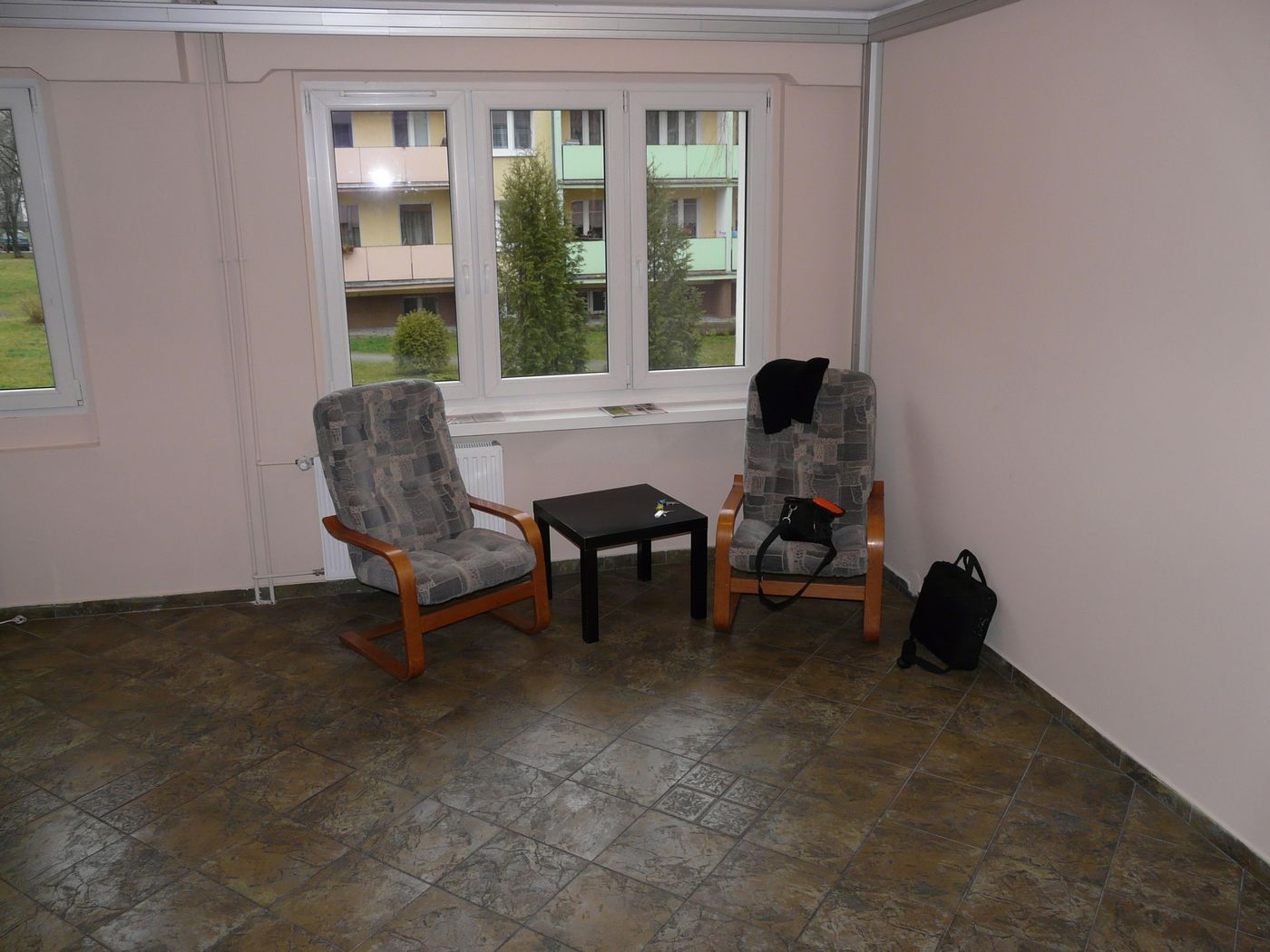 Ciekawy przypadek mieszkania w którym poprzednio przed długi czas mieściła się klinika weterynaryjna. Stąd wszystkie podłogi wyłożone płytkami a w pokojach wystawały zawory wody czy kanalizacji. Dla przeciętnego najemcy trudno wyobrazić sobie przytulne mieszkanie w takim lokalu. Ale nie dla nas!